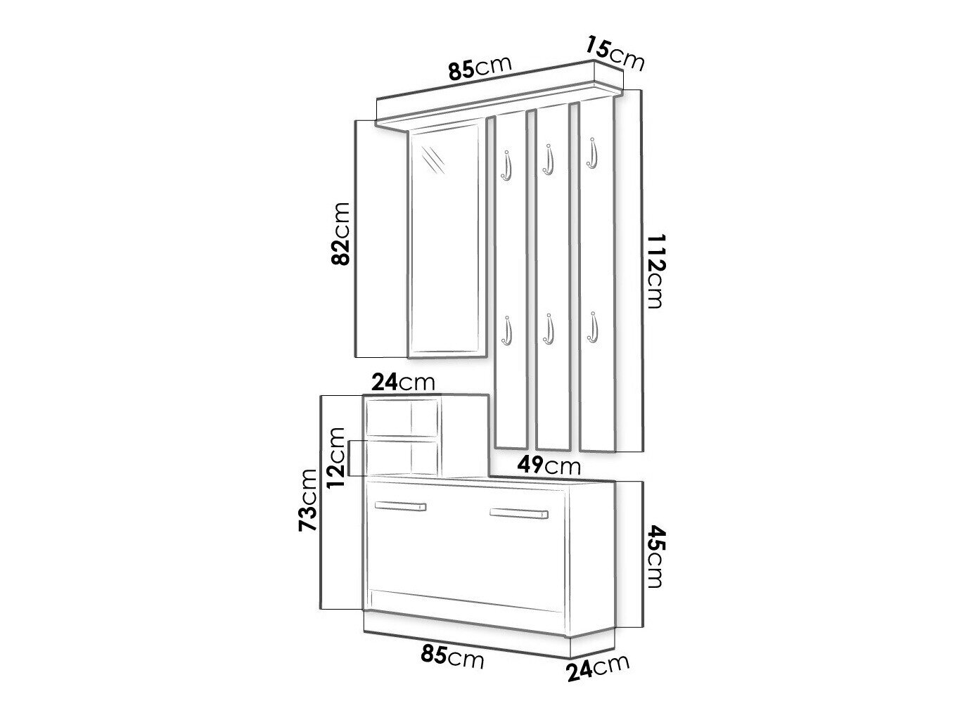 Skoskab dimensioner: