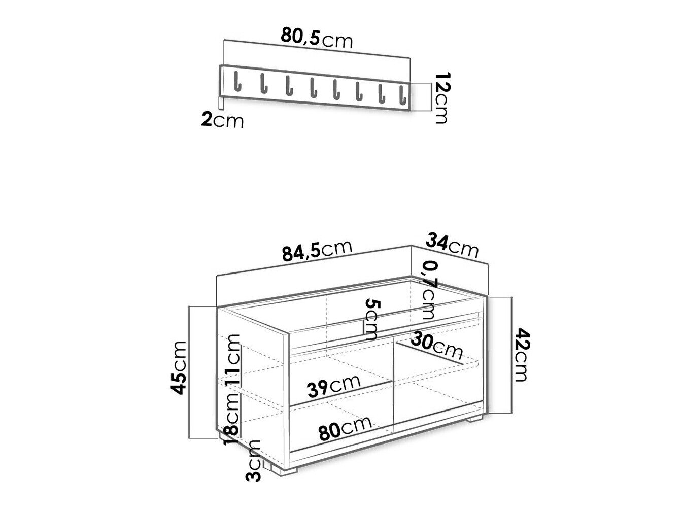 45 x 84.5 x 34 cm