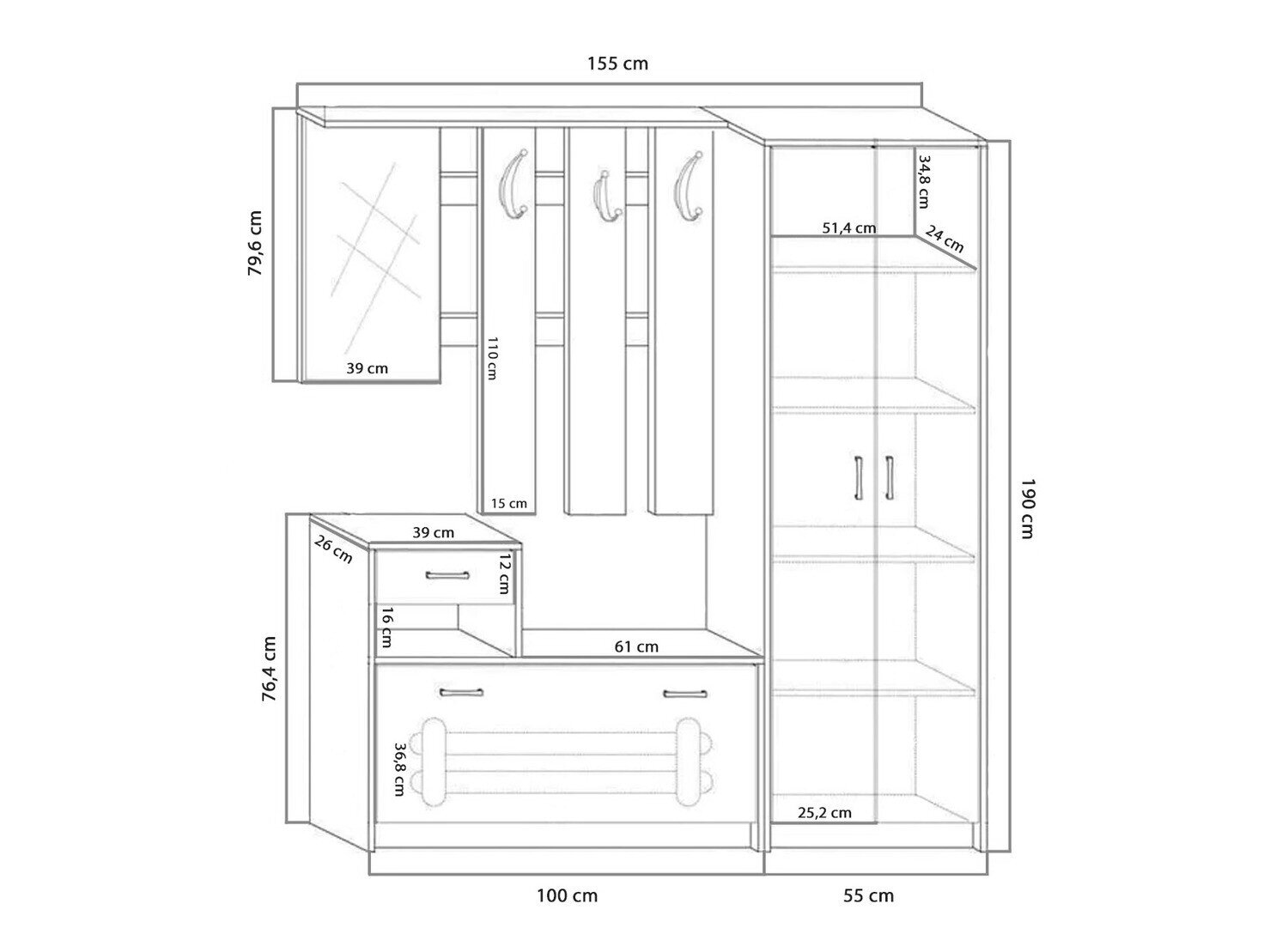 Skoskab dimensioner: