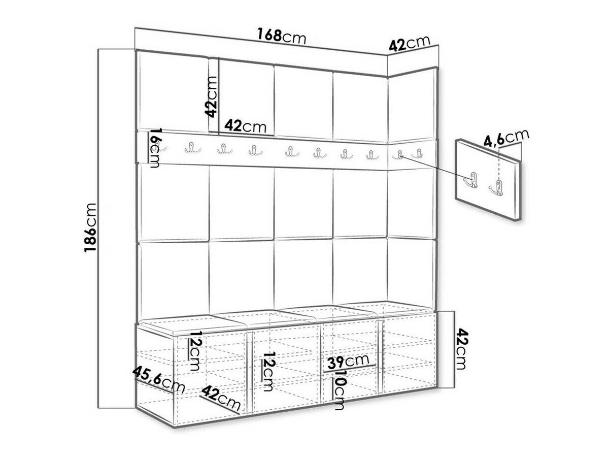 16 x 168 x 4.6; 16 x 42 x 4.6 cm