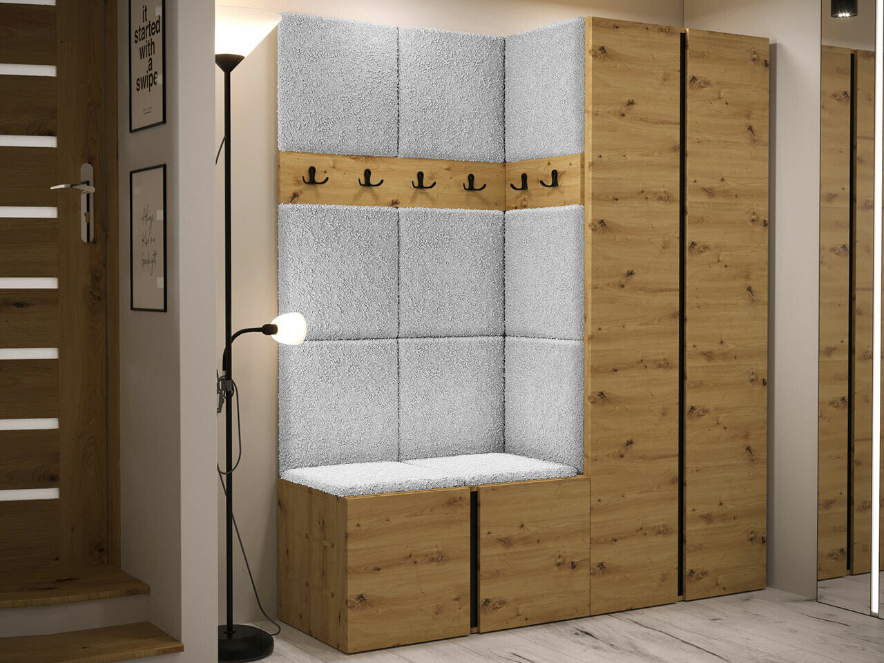 Blødt vægpanel, et elegant og funktionelt valg til dit hjem. Takket være den hævede overflade skaber panelet en unik 3D-effekt. Disse bløde paneler vil give mere hygge og komfort, og de vil desuden se ud som et dekorativt element. På grund af deres unikke egenskaber absorberer de lyd. Brug panelerne som en separat rumfunktion eller til at dække hele væggen. Panelet består af en 8 mm tyk plade, som gør det nemmere at montere på væggen. Blødheden og formen sikres af et 3 cm tykt syntetisk stof og det materiale, der dækker det. Du kan vælge et panelstof fra en bred vifte af farver, så du er sikker på at finde det, der passer bedst til din boligindretning.