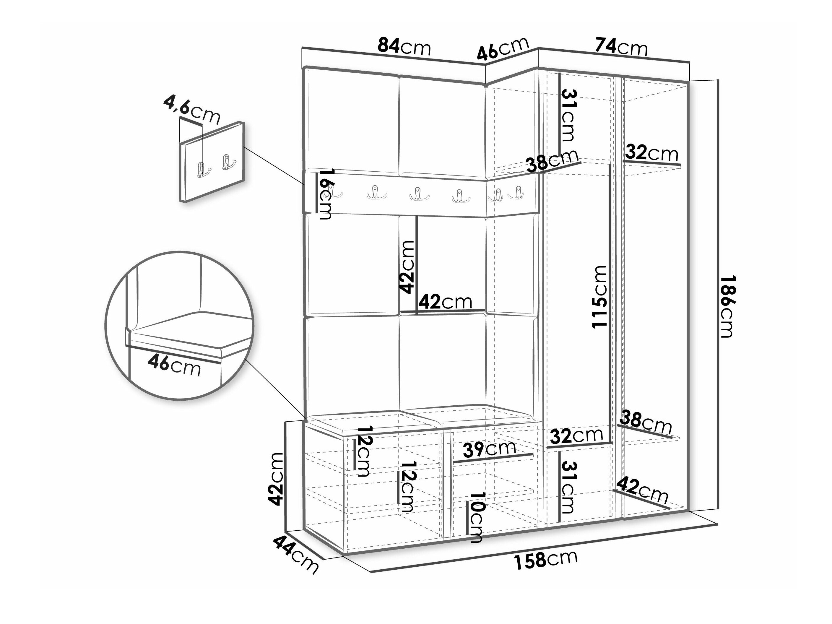 186 cm  42 cm  46 cm