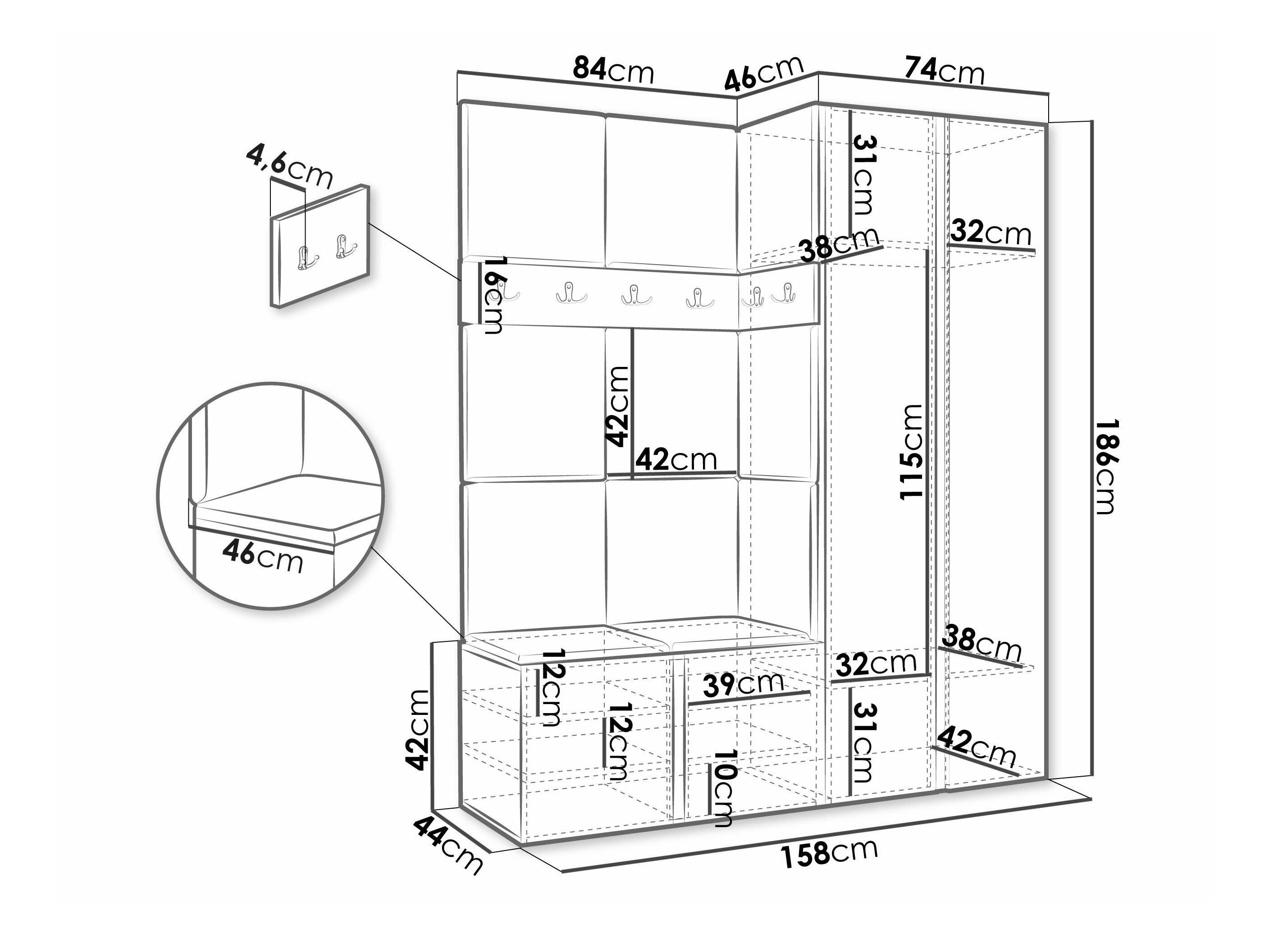 186 x 74 x 46 cm