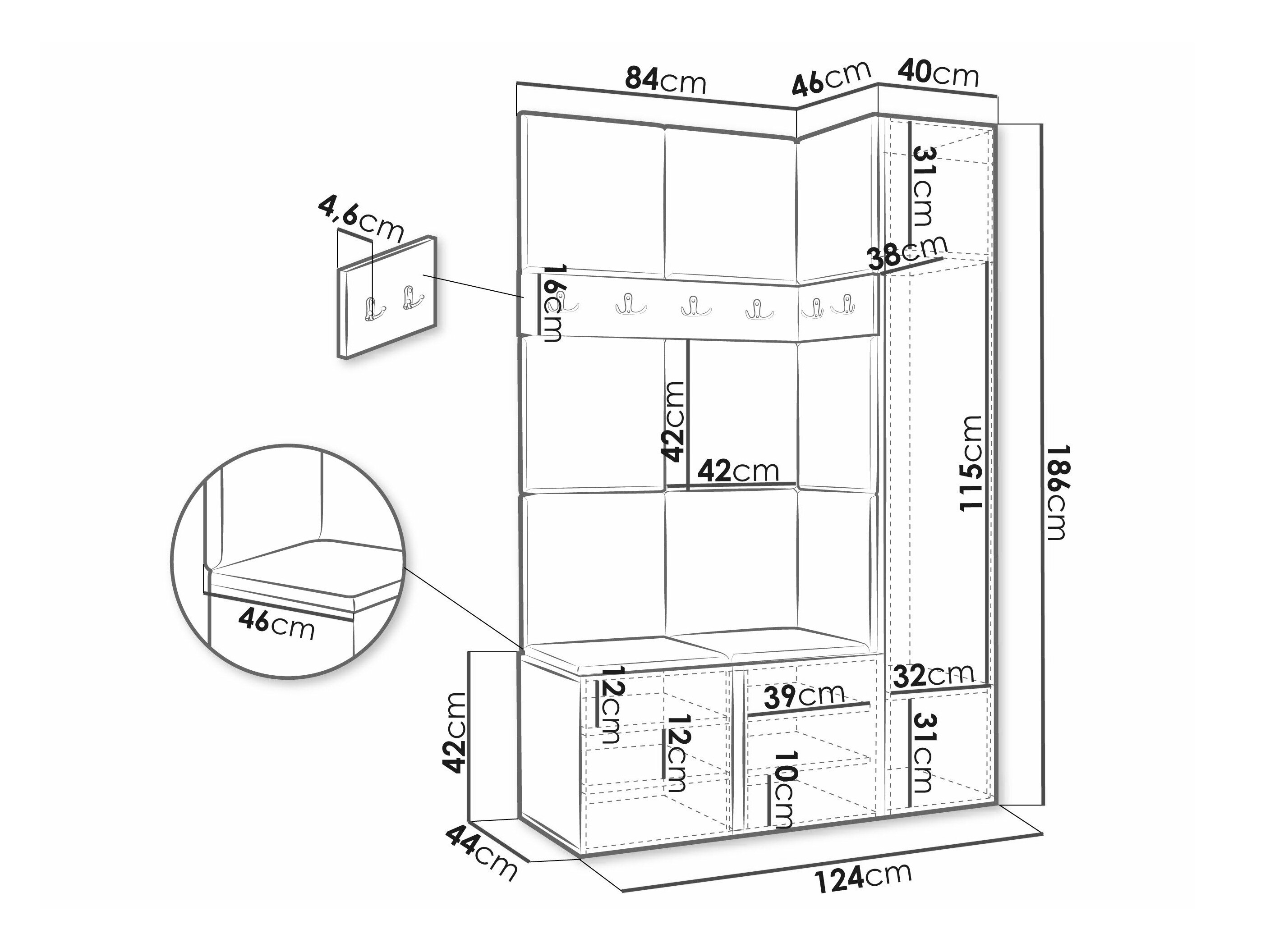 186 x 40 x 46 cm