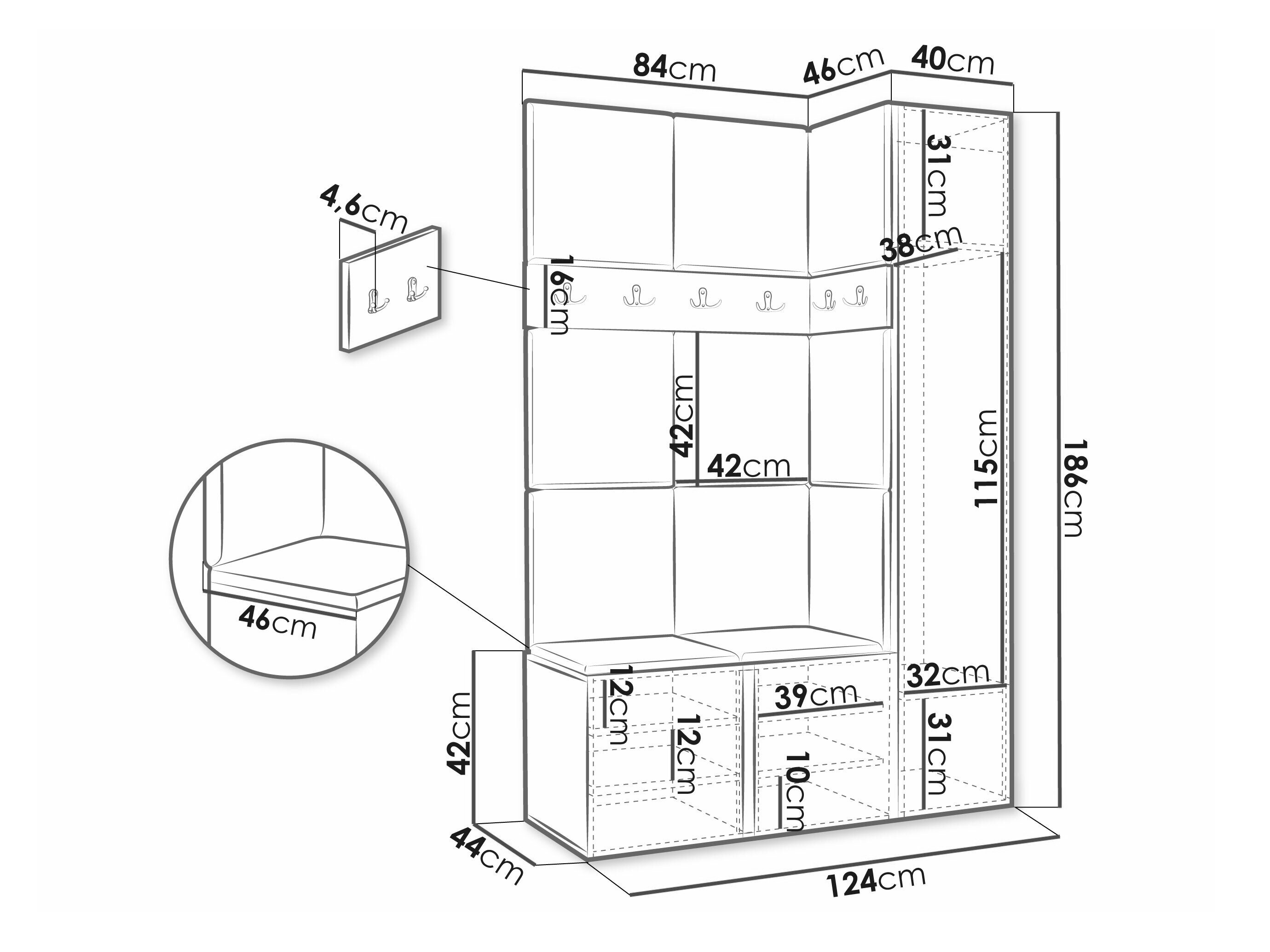 186 x 40 x 46 cm