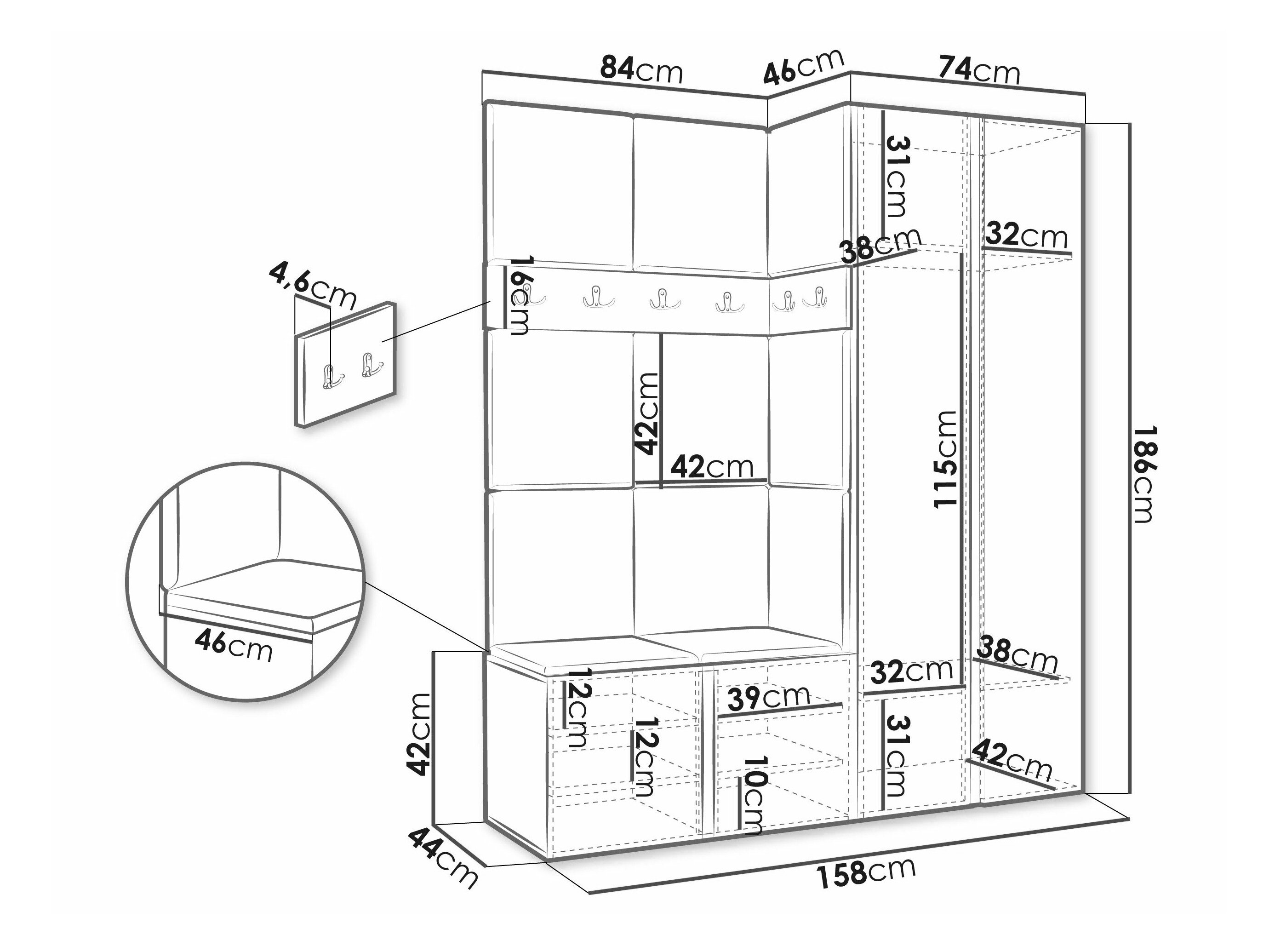 186 x 74 x 46 cm