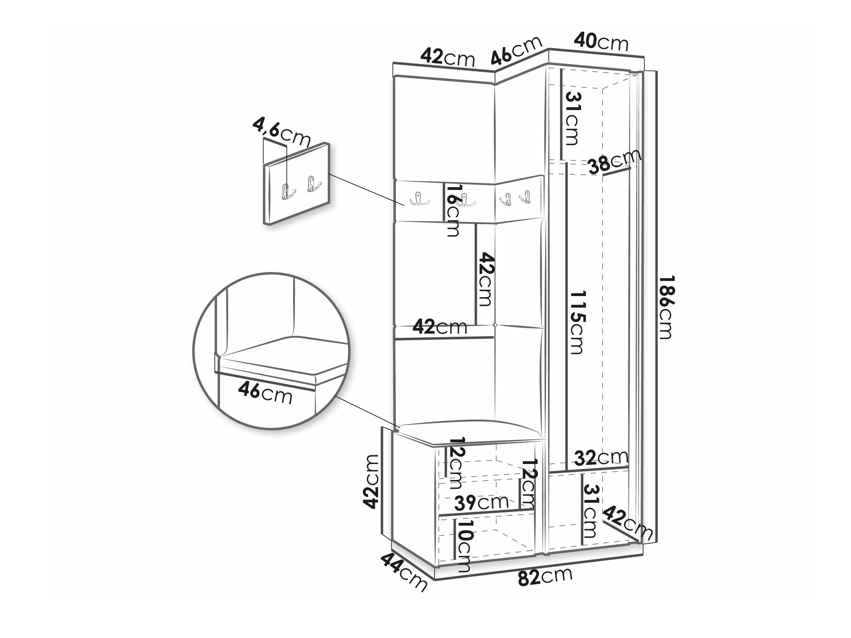 186 x 40 x 46 cm