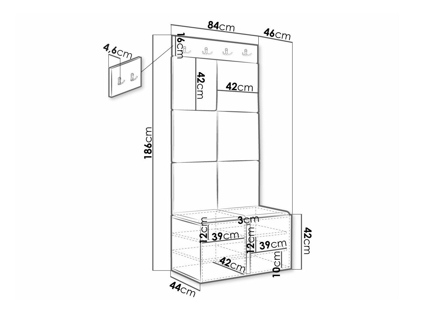 Skoskab dimensioner: