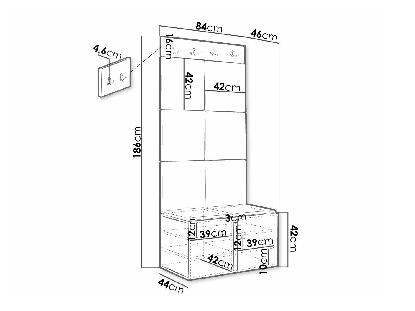 Skoskab dimensioner: