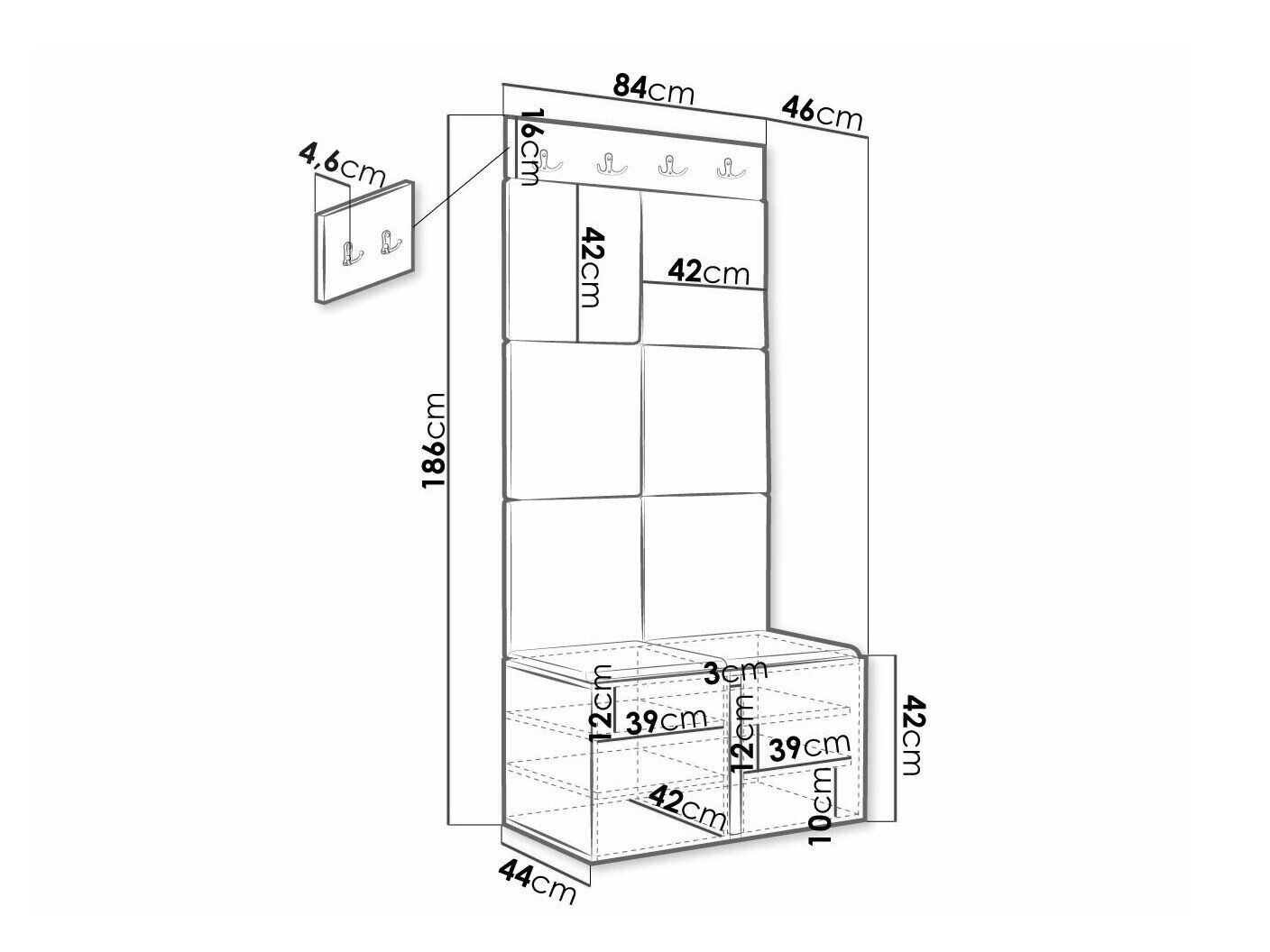 Skoskab dimensioner: