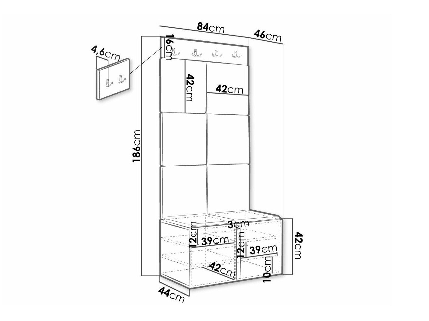 Skoskab dimensioner: