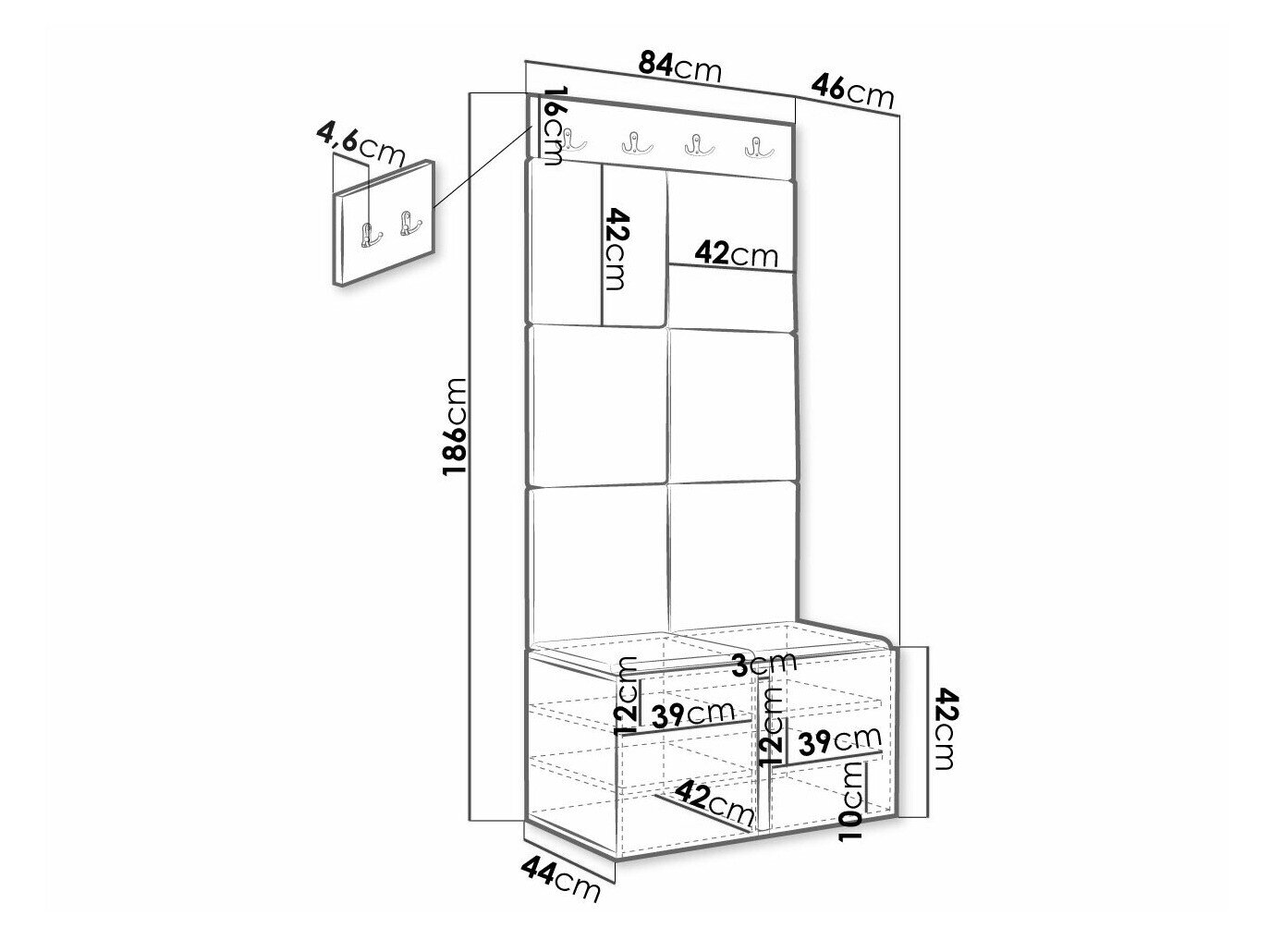 Skoskab dimensioner: