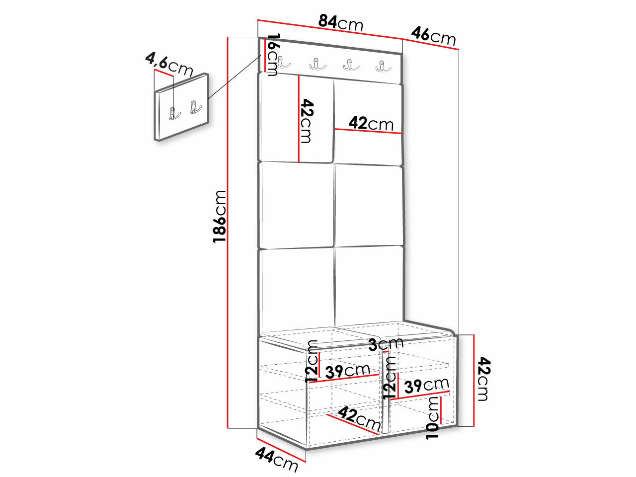 Skoskab dimensioner: