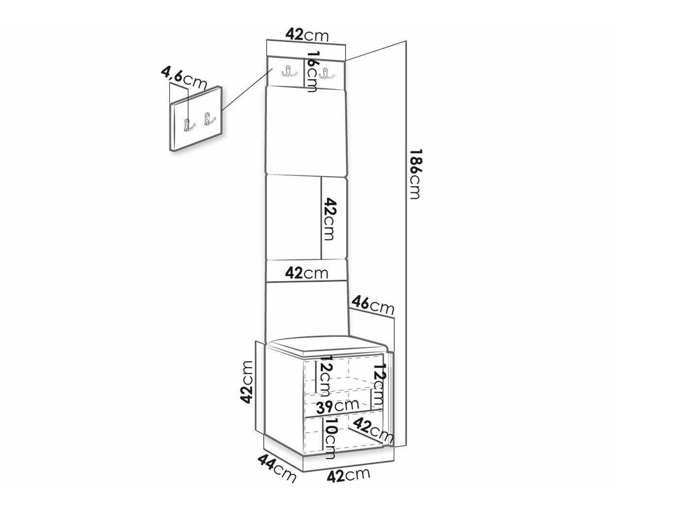 Skoskab dimensioner: