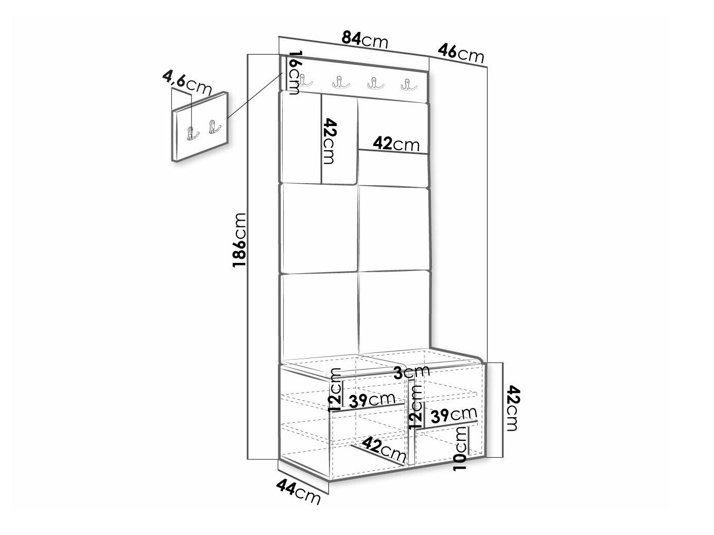 Skoskab dimensioner: