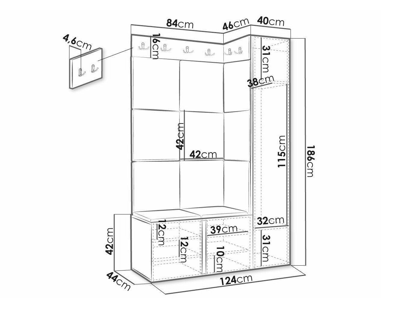Skoskab dimensioner: