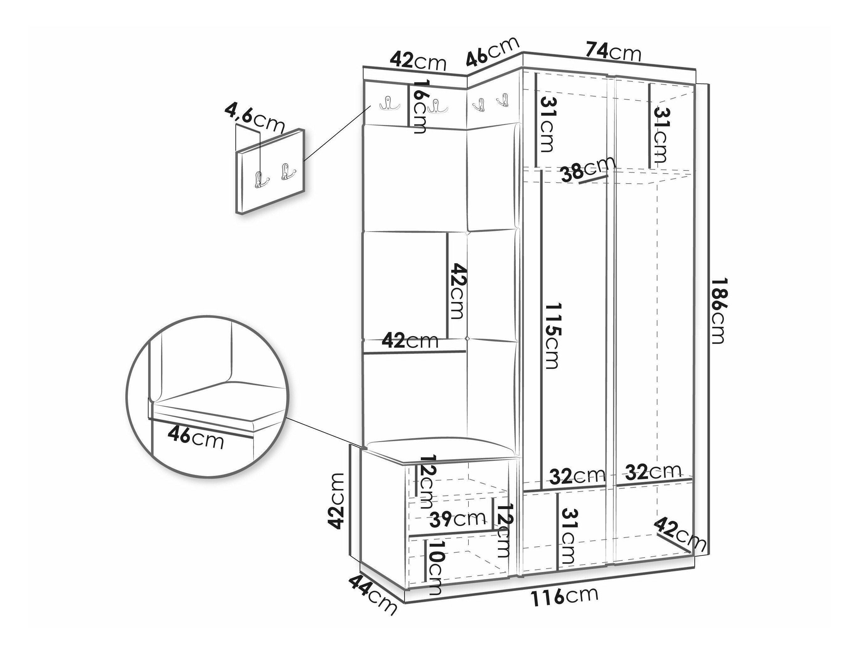 186 x 74 x 46 cm