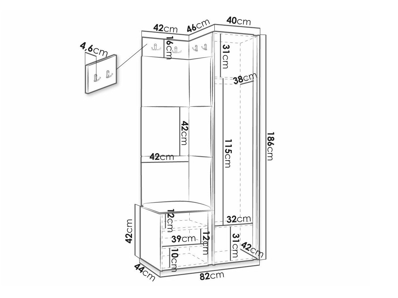 186 x 40 x 46 cm