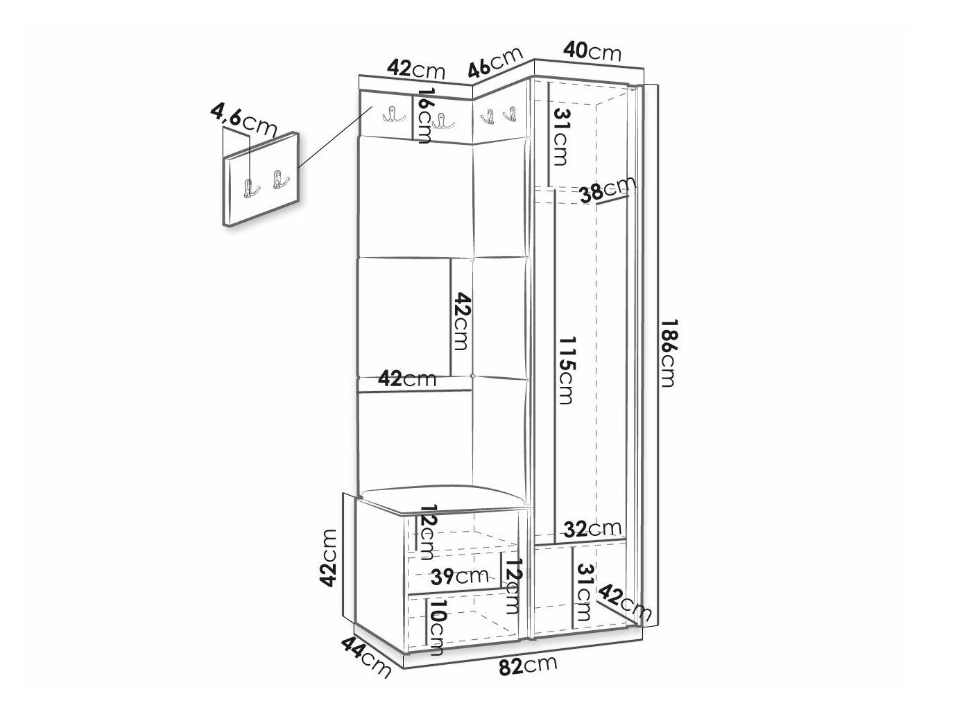 186 x 40 x 46 cm
