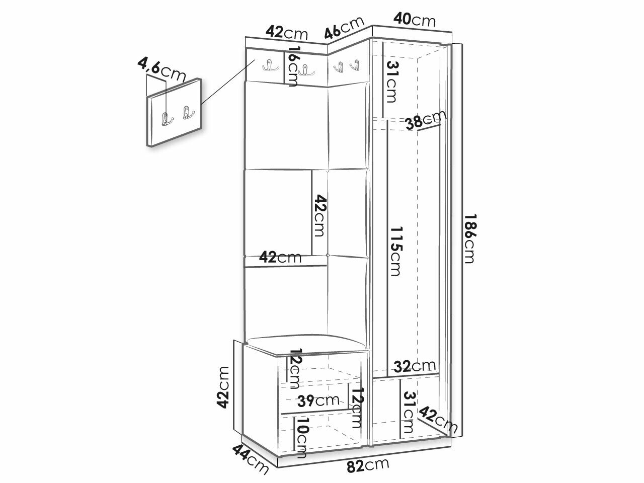 186 x 40 x 46 cm