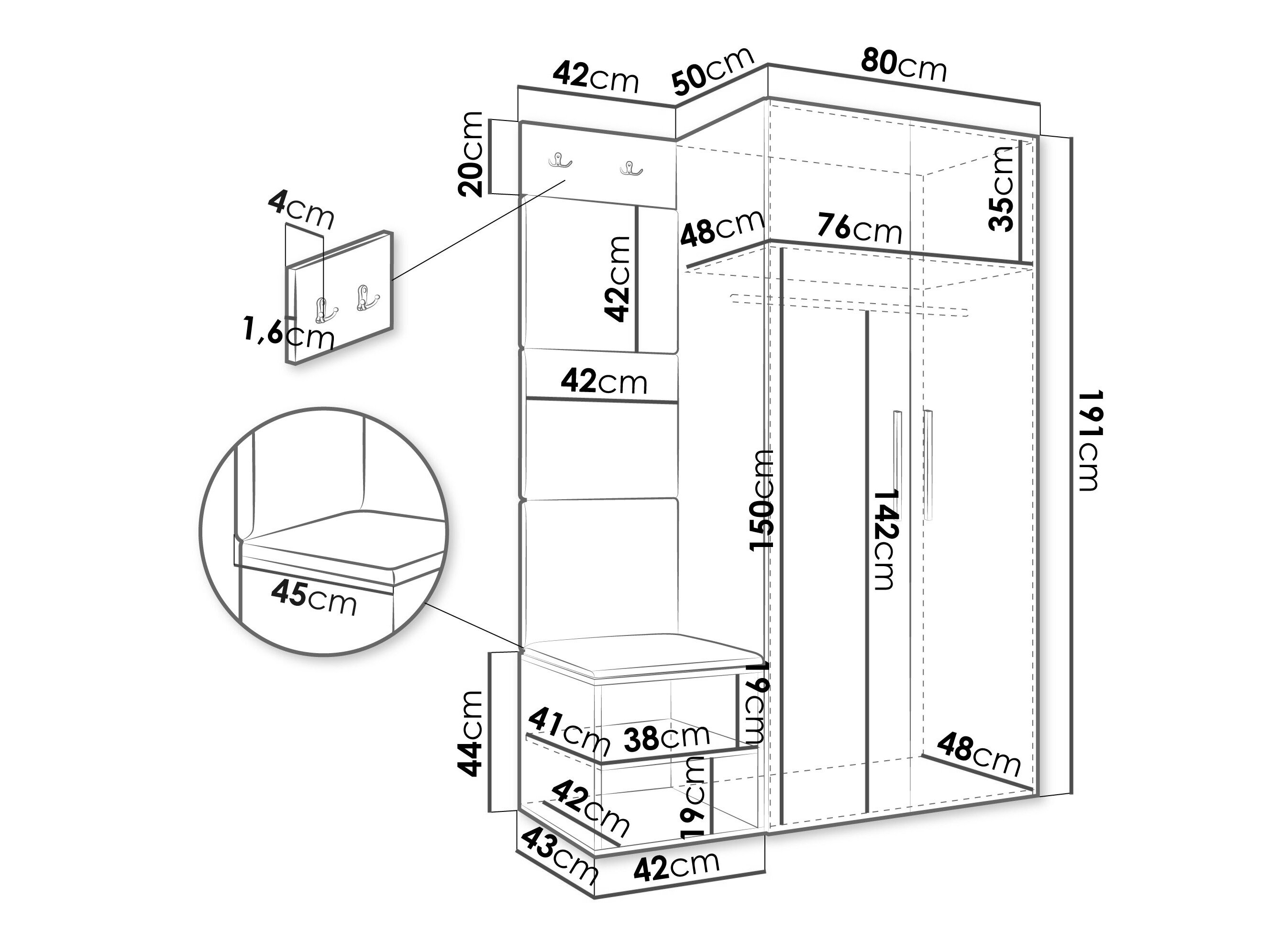 191 cm  82 cm  50 cm