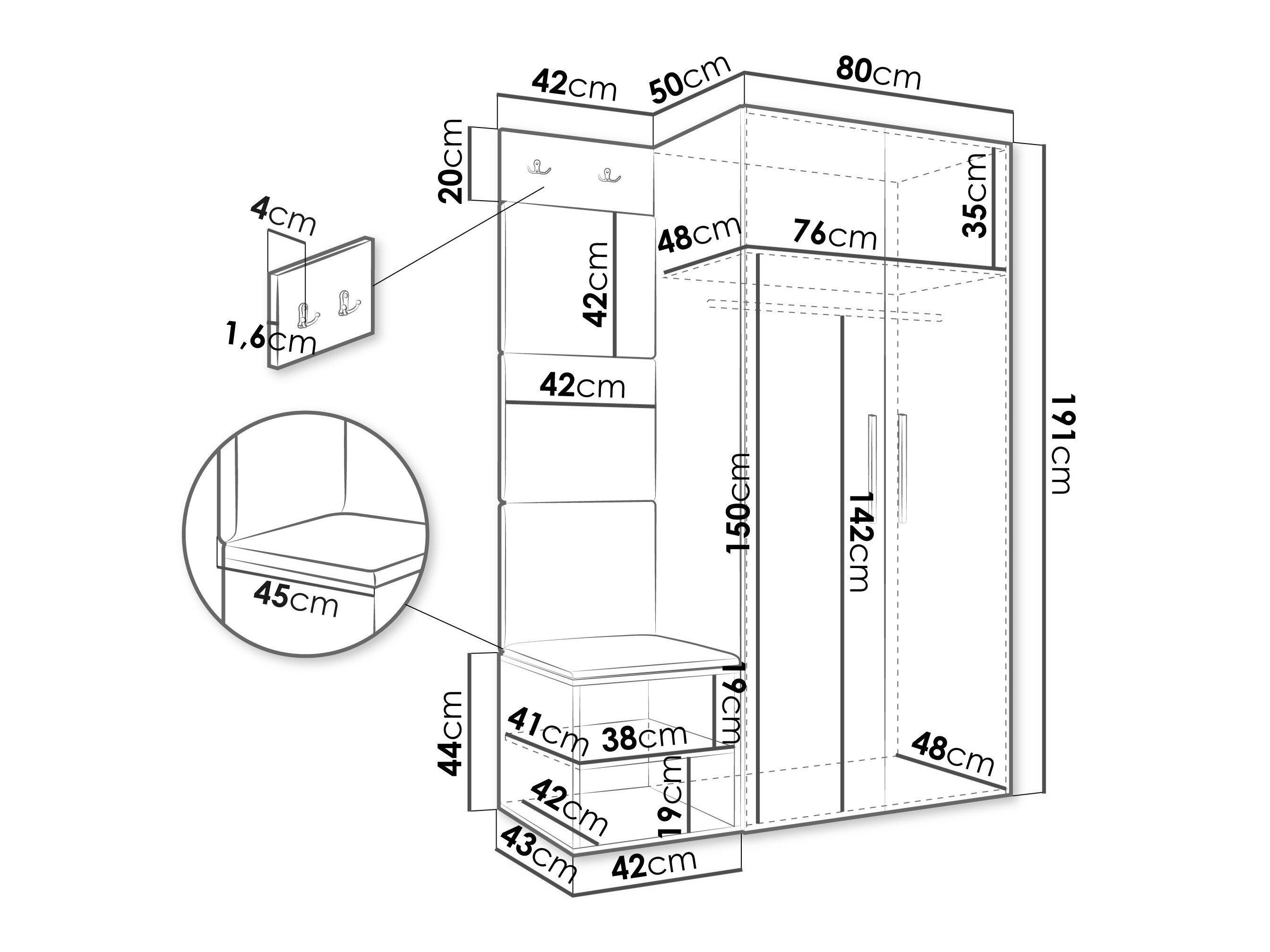 191 cm  82 cm  50 cm