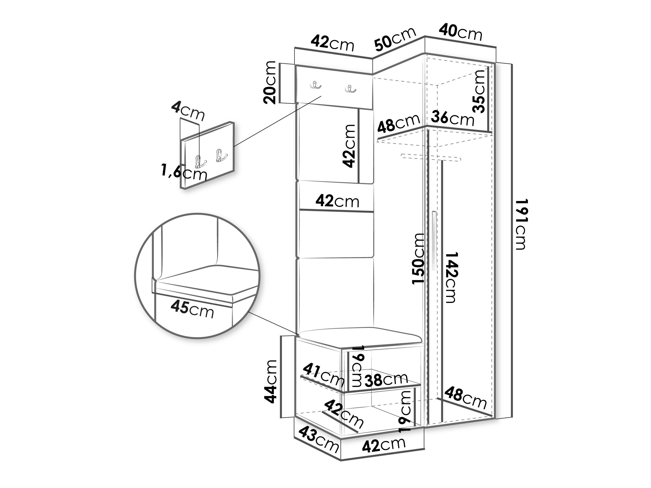191 x 40 x 50 cm