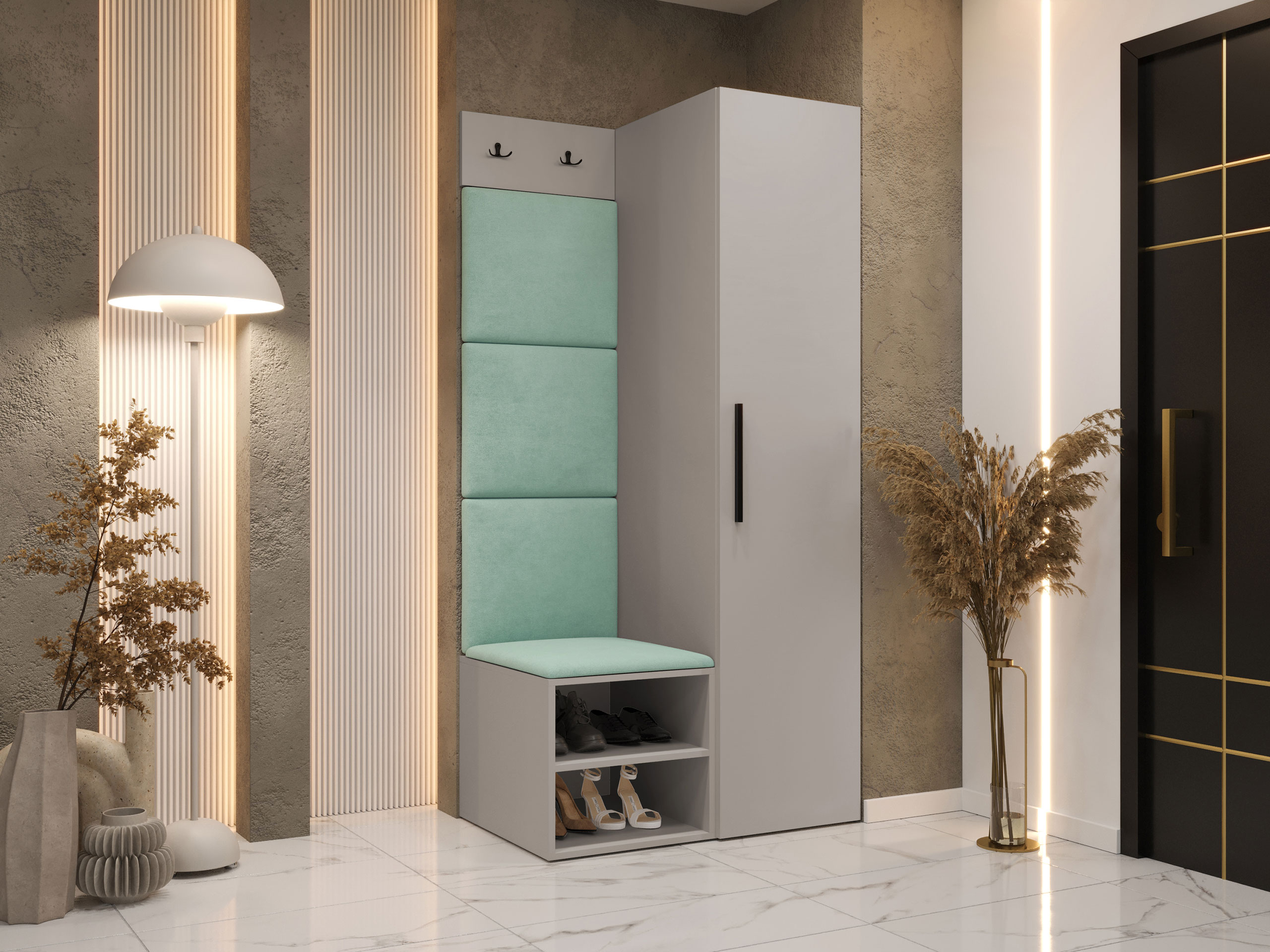Blødt vægpanel, et elegant og funktionelt valg til dit hjem. Takket være den hævede overflade skaber panelet en unik 3D-effekt. Disse bløde paneler vil give mere hygge og komfort, og de vil desuden se ud som et dekorativt element. På grund af deres unikke egenskaber absorberer de lyd. Brug panelerne som en separat rumfunktion eller til at dække hele væggen. Panelet består af en 8 mm tyk plade, som gør det nemmere at montere på væggen. Blødheden og formen sikres af et 3 cm tykt syntetisk stof og det materiale, der dækker det. Du kan vælge et panelstof fra en bred vifte af farver, så du er sikker på at finde det, der passer bedst til din boligindretning.