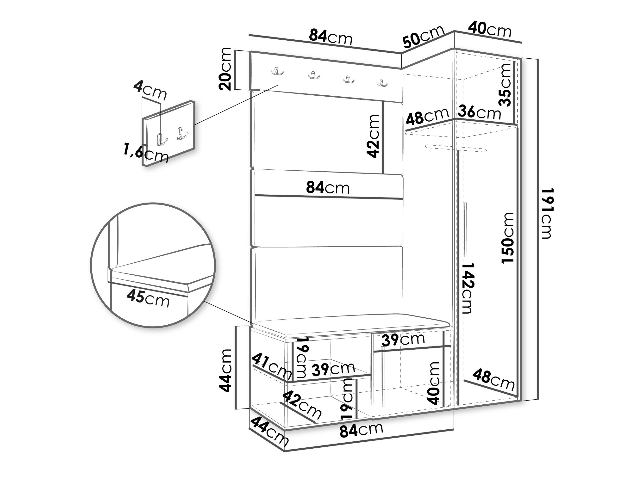 20 x 84 x 4 cm