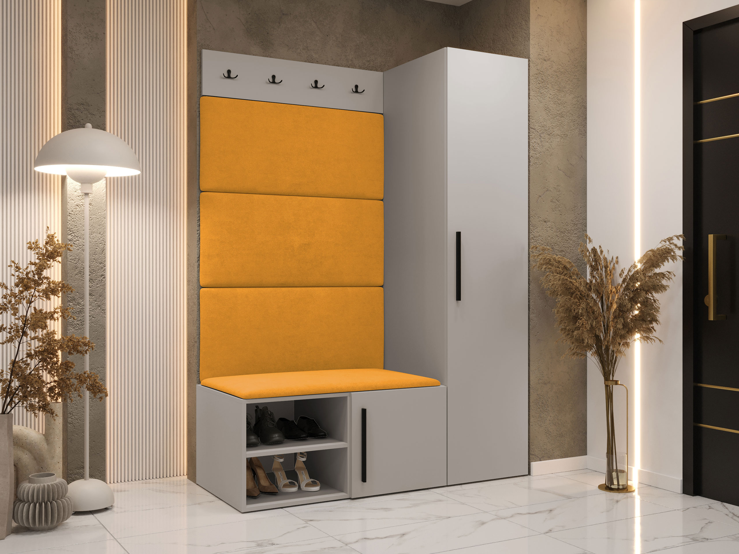 Blødt vægpanel, et elegant og funktionelt valg til dit hjem. Takket være den hævede overflade skaber panelet en unik 3D-effekt. Disse bløde paneler vil give mere hygge og komfort, og de vil desuden se ud som et dekorativt element. På grund af deres unikke egenskaber absorberer de lyd. Brug panelerne som en separat rumfunktion eller til at dække hele væggen. Panelet består af en 8 mm tyk plade, som gør det nemmere at montere på væggen. Blødheden og formen sikres af et 3 cm tykt syntetisk stof og det materiale, der dækker det. Du kan vælge et panelstof fra en bred vifte af farver, så du er sikker på at finde det, der passer bedst til din boligindretning.
