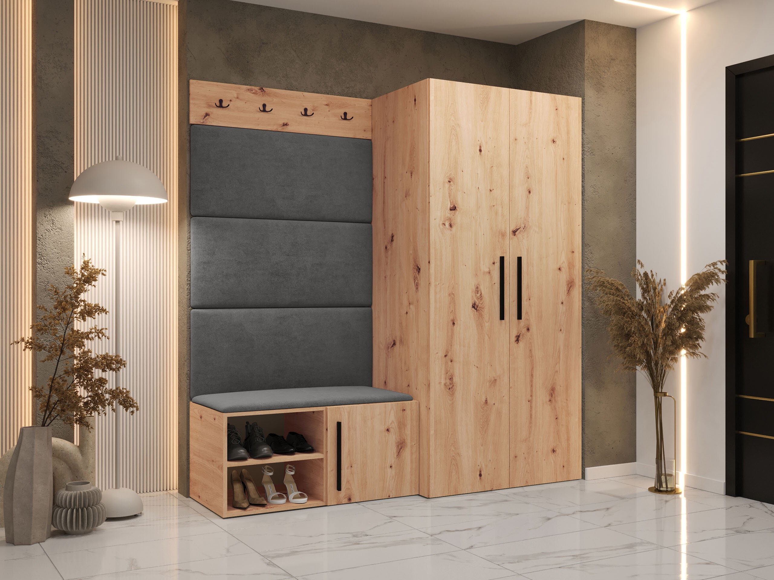 Blødt vægpanel, et elegant og funktionelt valg til dit hjem. Takket være den hævede overflade skaber panelet en unik 3D-effekt. Disse bløde paneler vil give mere hygge og komfort, og de vil desuden se ud som et dekorativt element. På grund af deres unikke egenskaber absorberer de lyd. Brug panelerne som en separat rumfunktion eller til at dække hele væggen. Panelet består af en 8 mm tyk plade, som gør det nemmere at montere på væggen. Blødheden og formen sikres af et 3 cm tykt syntetisk stof og det materiale, der dækker det. Du kan vælge et panelstof fra en bred vifte af farver, så du er sikker på at finde det, der passer bedst til din boligindretning.