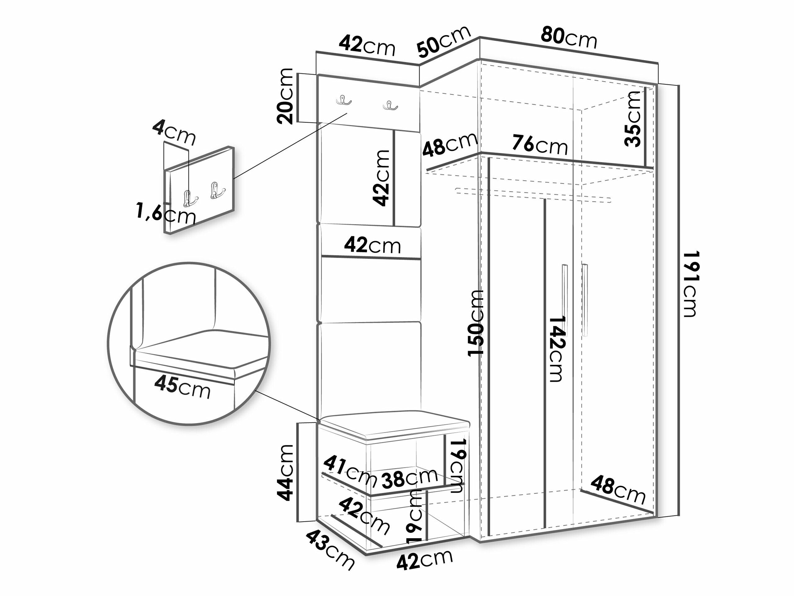 Dimensioner på garderobeskabe:
