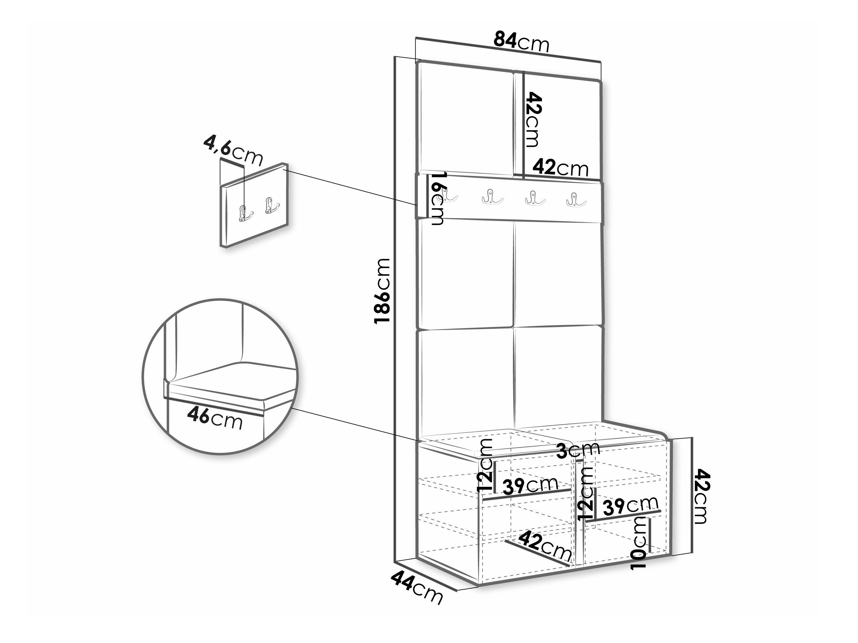 186 cm  42 cm  46 cm