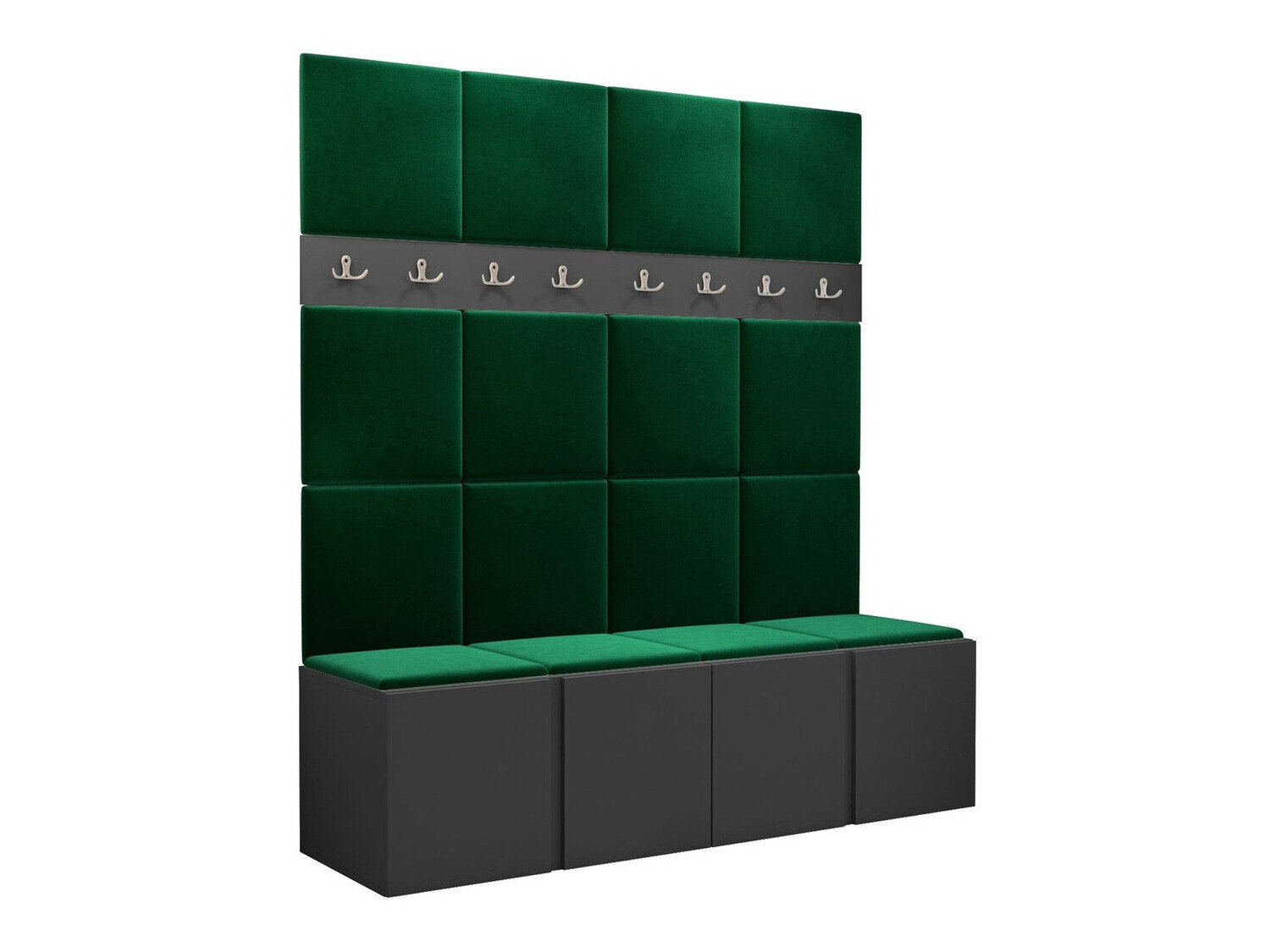 Blødt vægpanel, et elegant og funktionelt valg til dit hjem. Takket være den hævede overflade skaber panelet en unik 3D-effekt. Disse bløde paneler vil give mere hygge og komfort, og de vil desuden se ud som et dekorativt element. På grund af deres unikke egenskaber absorberer de lyd. Brug panelerne som en separat rumfunktion eller til at dække hele væggen. Panelet består af en 8 mm tyk plade, som gør det nemmere at montere på væggen. Blødheden og formen sikres af et 3 cm tykt syntetisk stof og det materiale, der dækker det. Du kan vælge et panelstof fra en bred vifte af farver, så du er sikker på at finde det, der passer bedst til din boligindretning.