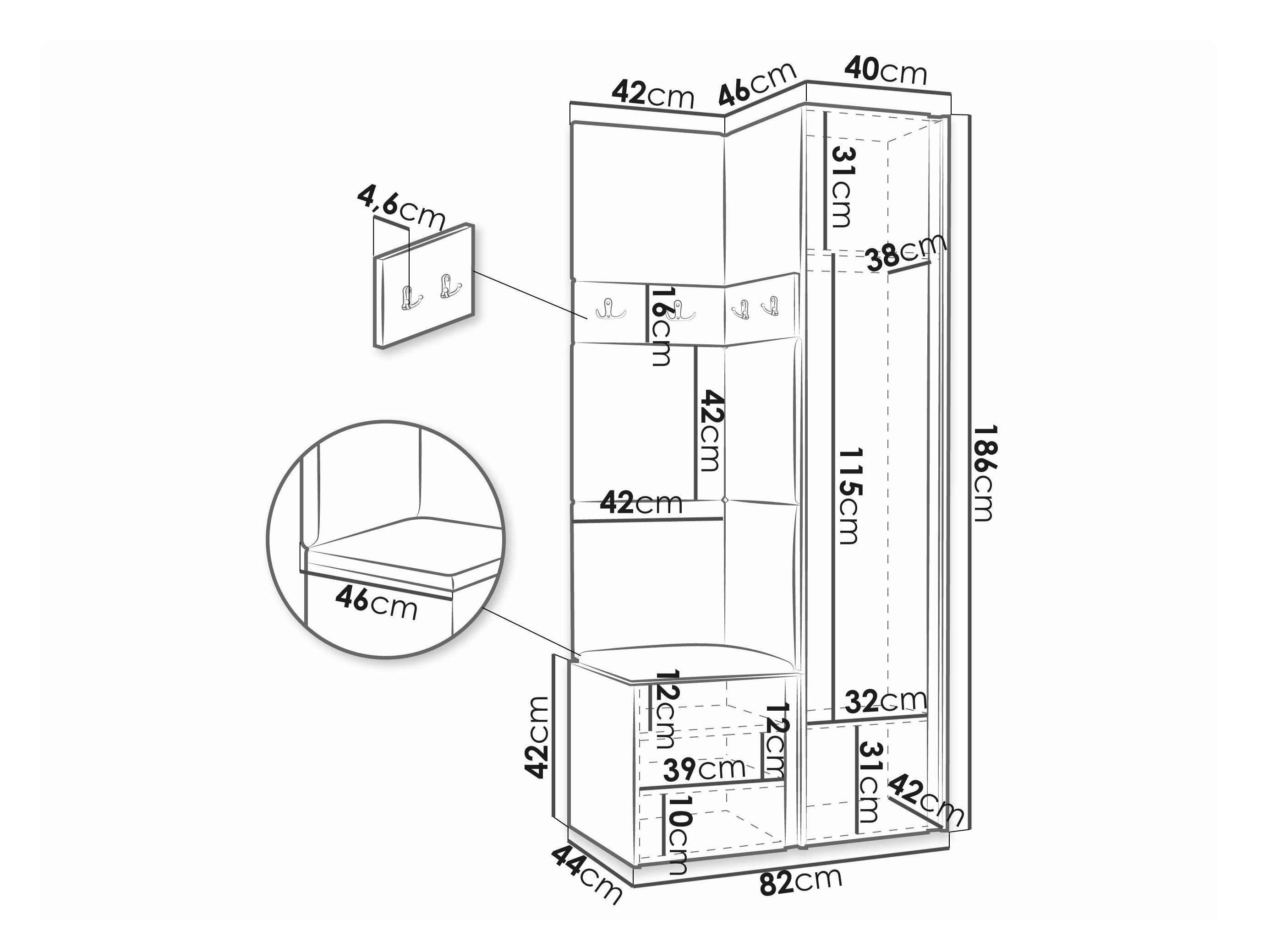 186 x 40 x 46 cm