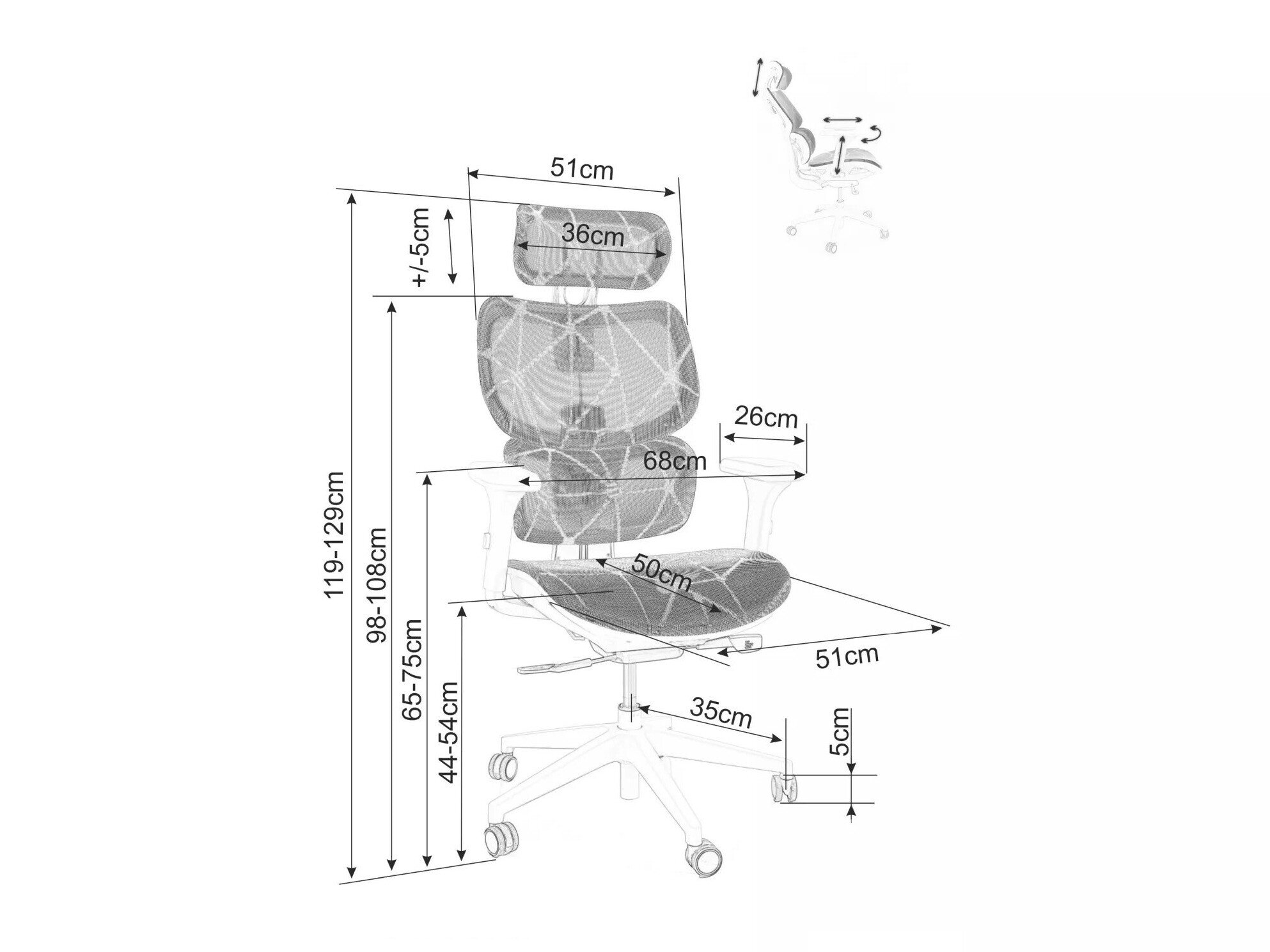 - Justerbare armlæn