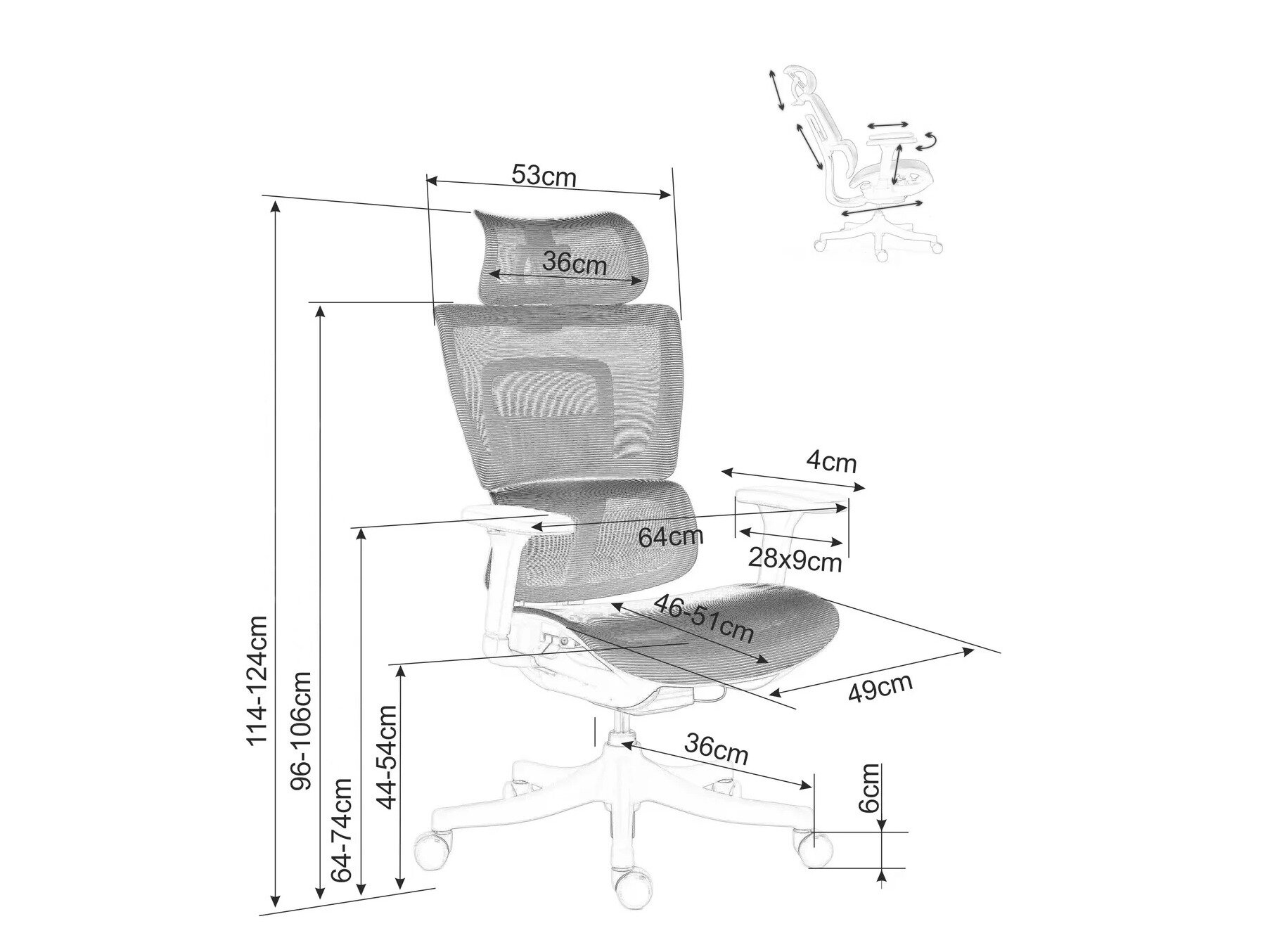 - Justerbare armlæn