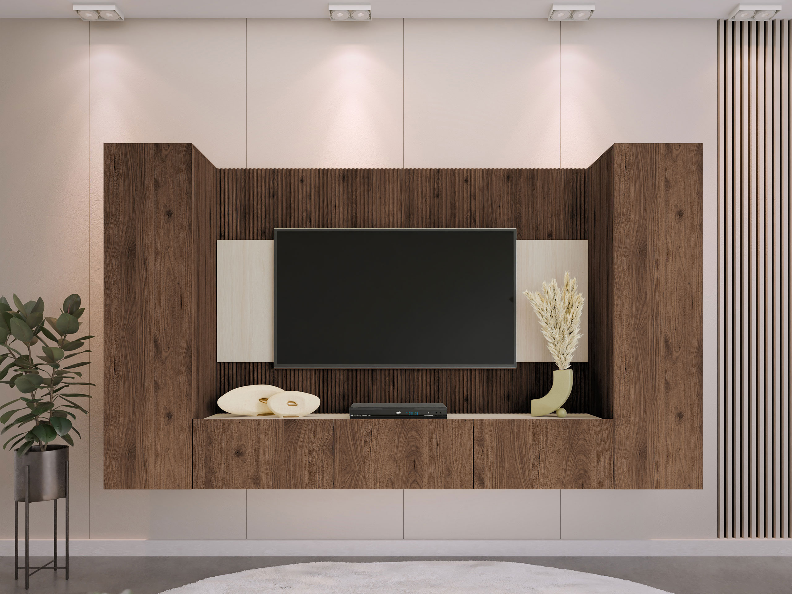 Stuemøbelsæt Comfivo Salix IV (Valnød + Lys travertin)
