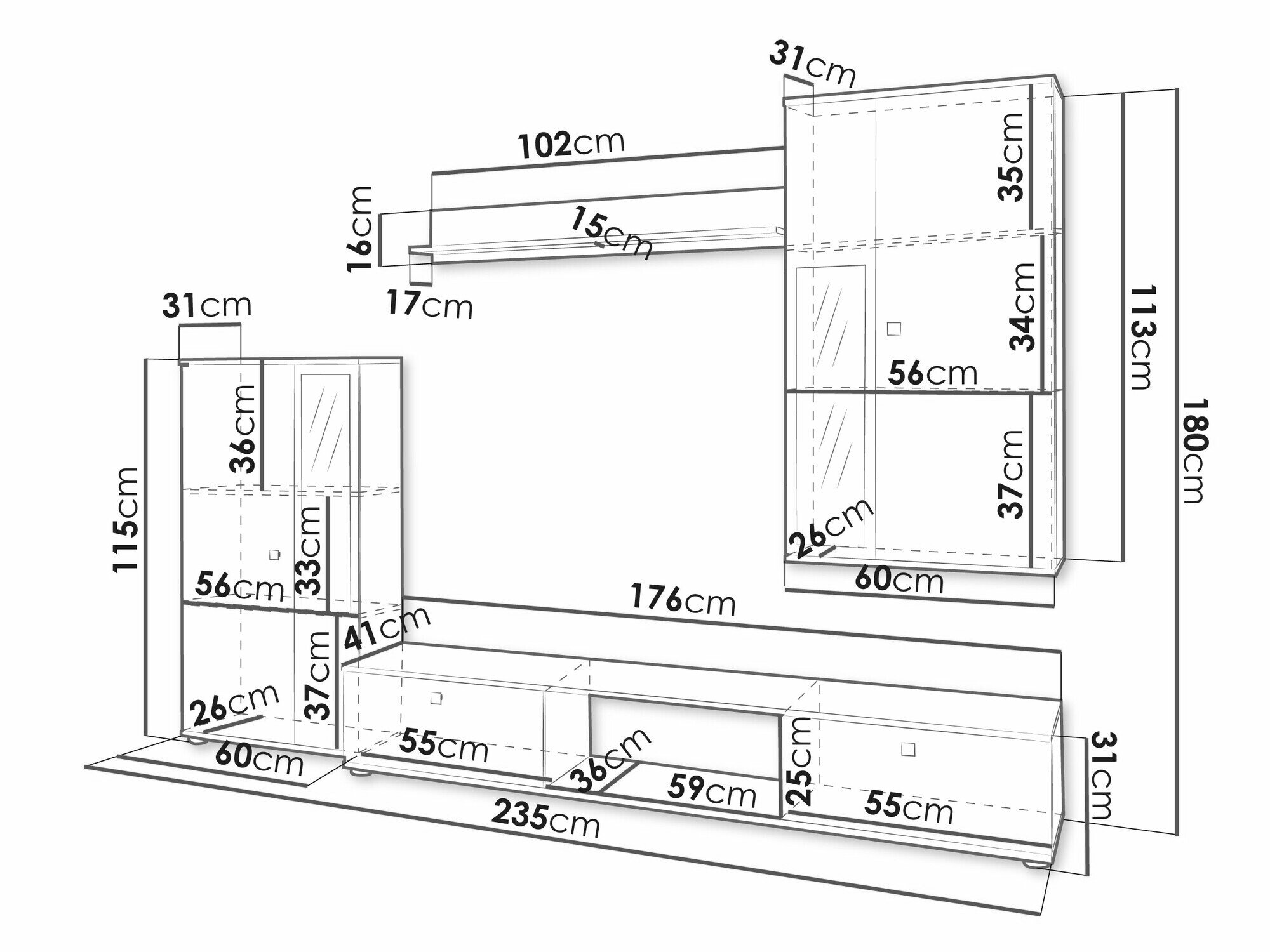 31 x 176 x 41 cm