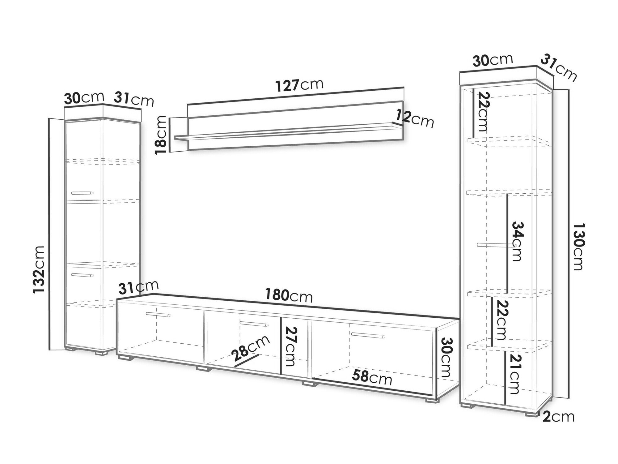 30 x 180 x 31 cm