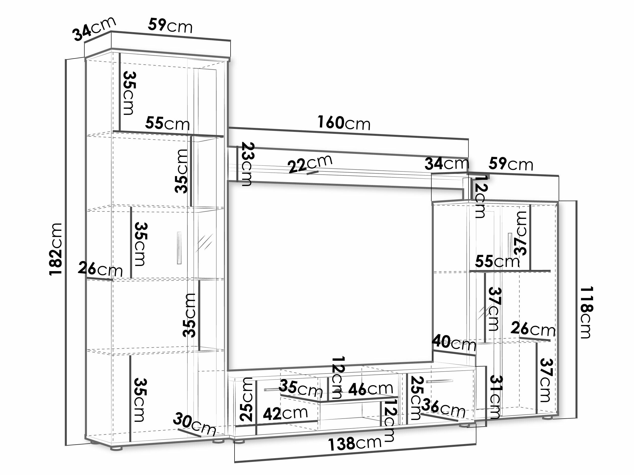 23 x 160 x 34 cm