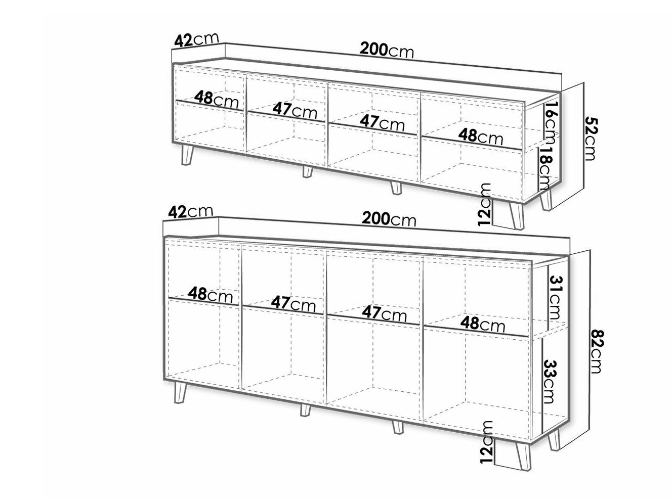 52 x 200 x 42 cm