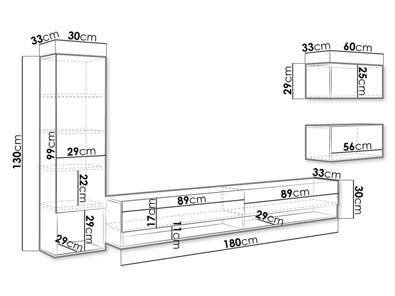 30 x 180 x 33 cm