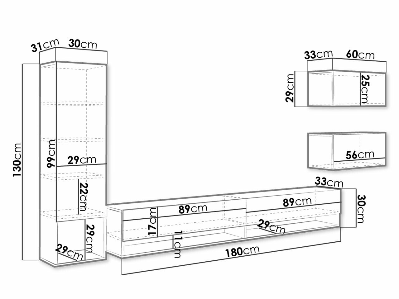 30 x 180 x 33 cm