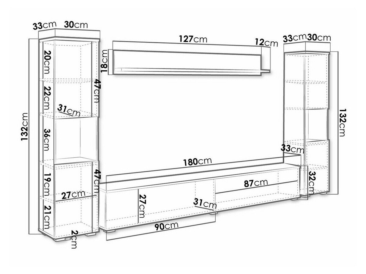 30 x 180 x 33 cm