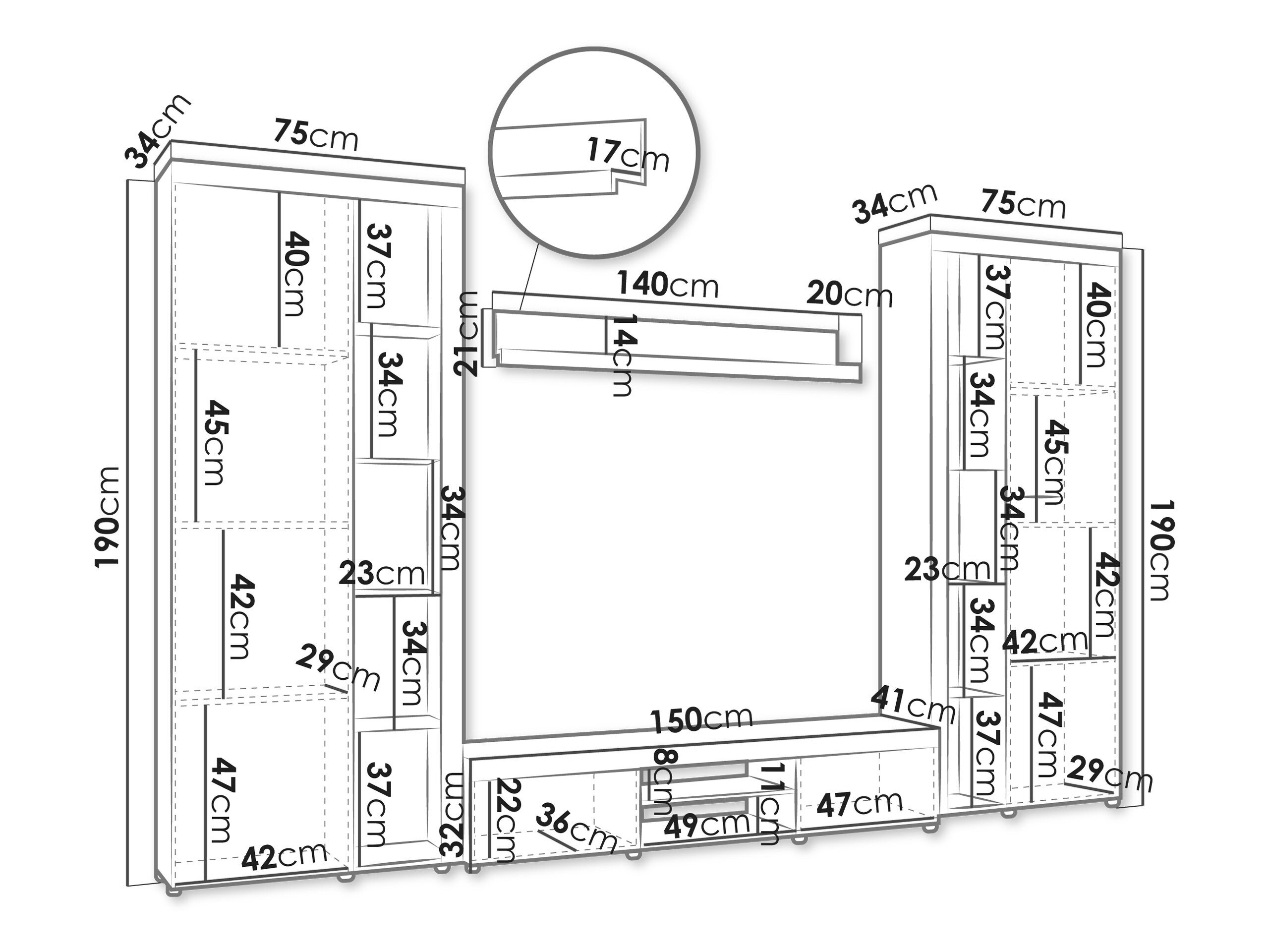190 x 75 x 34 cm