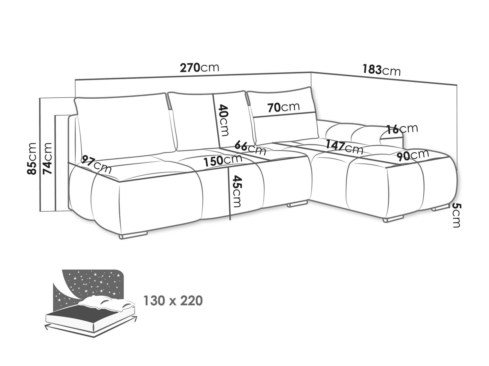 Længde på soveområde: