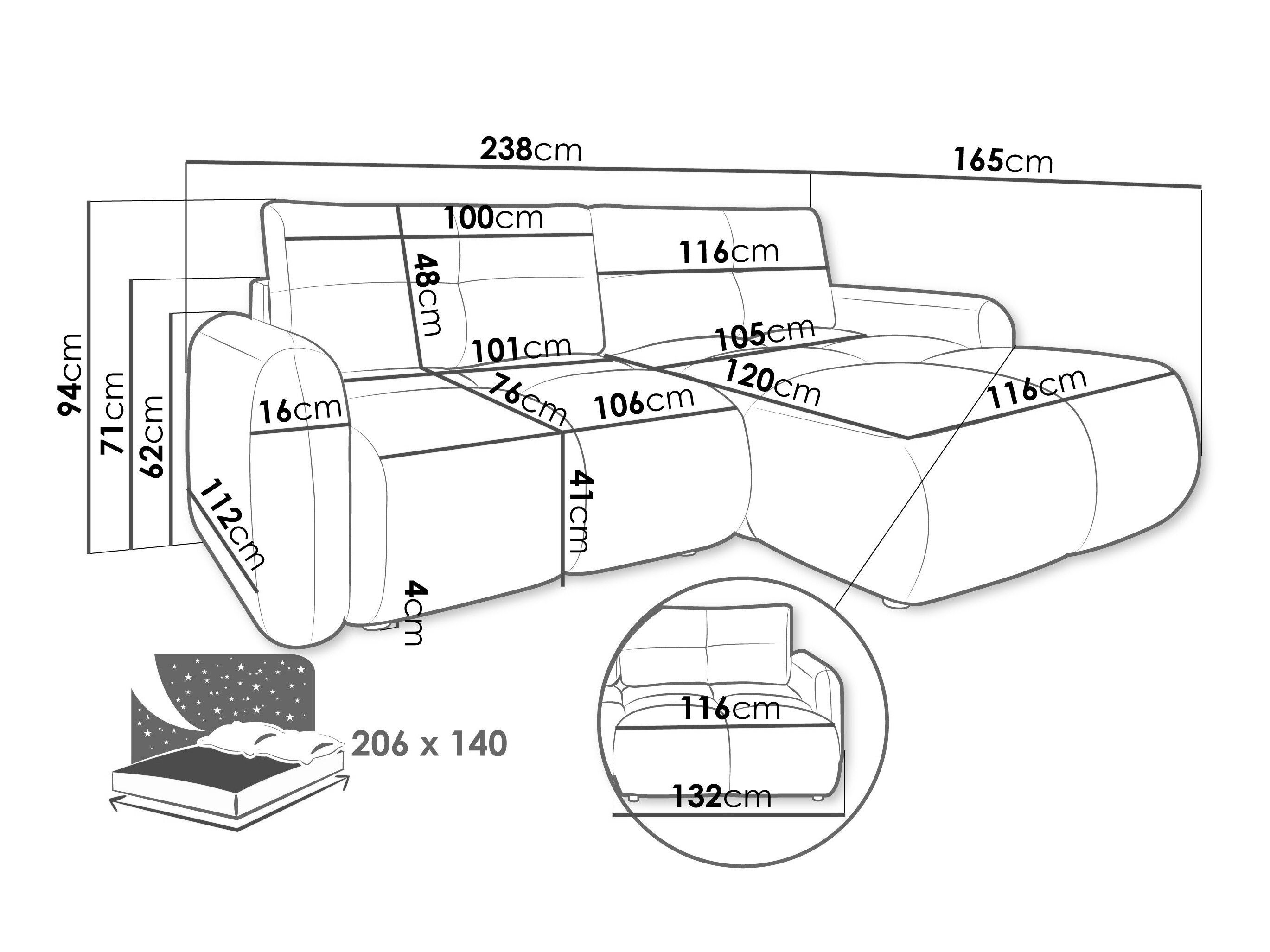 Dette stof har løkker i forskellige størrelser, der skaber en blød, tredimensionel struktur, som tilføjer varme og komfort til ethvert interiør. Fri for skadelige stoffer. Dette stof er ideelt til skandinaviske og minimalistiske rum og kombinerer stil med funktionalitet. For at bevare udseendet og fornemmelsen anbefales det kun at rengøre overfladen med milde rengøringsprodukter, der er specielt udviklet til polstring.