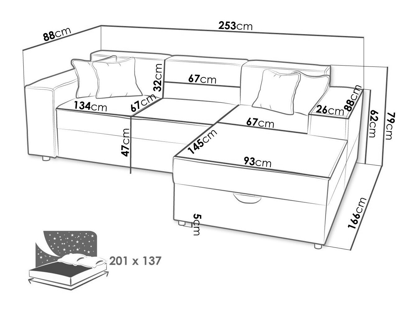 Sengekasse dimensioner: