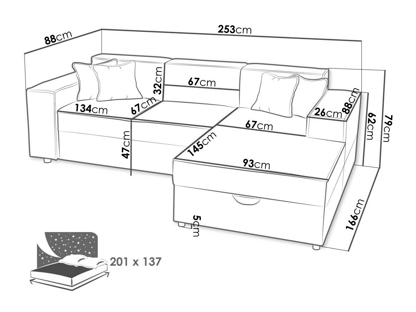 Sengekasse dimensioner: